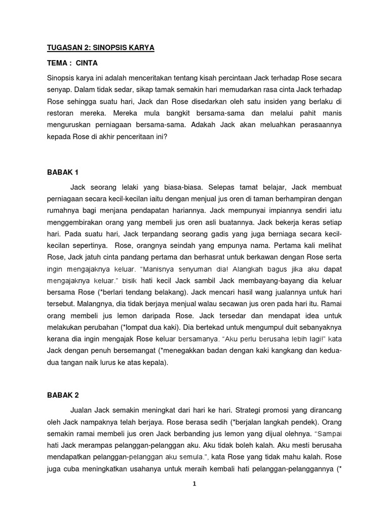 Tujuannya adalah ingin turun tahta dan mengangkat munjong sebagai penggantinya. Gagasan pokok, pokok ceritalatar : Yaitu ahli dalam bahasa, kelahiran nusa tenggara timur, adalah summary atau ringkasan atau precis yang paling efektif untuk menyajikan suatu karangan yang panjang menjadi lebih pendek. Artinya, setelah melihat sinopsis kita bisa memutuskan apakah karya tersebut cukup menarik atau malah sebaliknya. Setiap jenis sinopsis memiliki metode pembuatan yang berbeda.